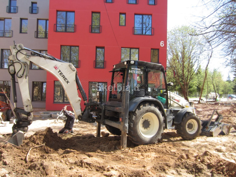 Duobių pamatams kasimas su ekskavatoriu krautuvu;