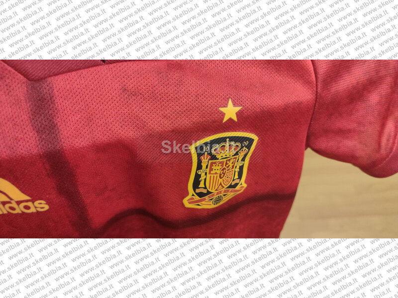 Originalūs Adidas firmos Ispanijos futbolo rinktinės marškinėliai. Būklė labai gera, be defektų (medžiaga atrodo kaip ištepta, bet ten ne dėmės, tiesiog toks dizainas). Dydis etiketėje vaikiškas 4-5 metų (išmatavimai foto). Kaina 20€, Kaunas, siunčiu, +37062701267.