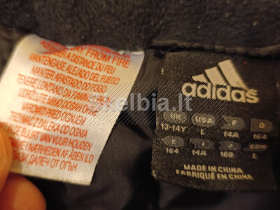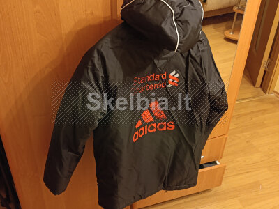 Originali Adidas firmos “Liverpool” futbolo klubo paaugliška striukė. Būklė gera, tik ant nugaros reklama apsitrynusi (greičiausiai nuo skalbimo). Dydis paaugliškas 13-14 metų (išmatavimai foto). Kaina 23€, Kaunas, kitur siunčiu, +37062701267.
