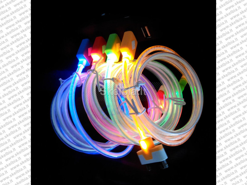 Parduodami šviečiantys USB laidai, turime laidų tinkančių iPhone 4 / 4S, bei iPhone 5 / 5S / 5C. Turime įvairių spalvų.