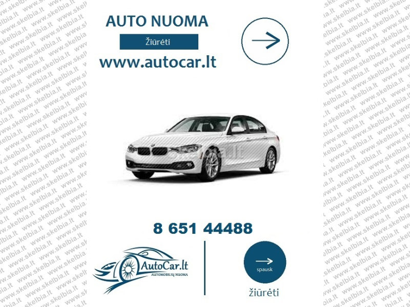www.autocar.lt - tai automobilių nuomos bendrovė siūlanti išsinuomoti lengvuosius automobilius visuose Lietuvos oro uostuose. Autonuoma Kauno oro uoste - Autonuoma Vilniaus oro uoste, automobiliu nuoma Palangos oro uoste. Automobiliai pristatomi visą parą be išeiginių iš anksto suderinus laiką. Nuomojant automobilį ilgesniam laikui - visi priedai arba nemokamai arba už simbolinę kainą. Siūlome vaikišką kėdutę, stogo bagažinėje dviračių laikiklius, navigaciją ir karštos kavos puodelį pasitinkant oro uoste. Automobilių rezervacijai nereikalingas užstatas. Imamas simbolinis mokestis rezervacijos patvirtinimui už pirmą nuomos dieną. Susisiekti galima telefonu tel.: +37065144488.