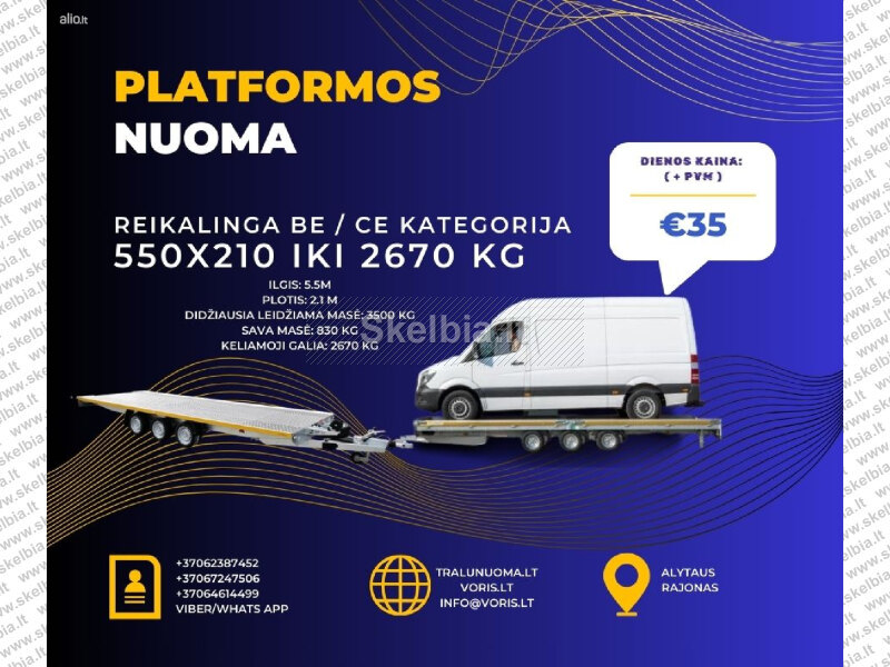 PRIEKABŲ NUOMA www.voris.lt Alytuje ir rajone 37062387452 arba 37064614499 37067247506 Platformos,Traliukai,Priekabos,mikroautobusai www.voris.lt