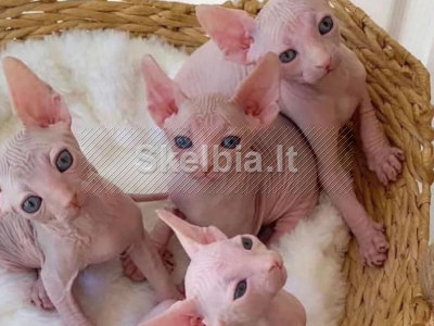 Gražūs sfinkso kačiukai, 14 savaičių ir ruošiasi išvykti, berniukas juodas, o mergaitė kreminė, abu labai mylinčios asmenybės, nuolat murkiantys ir žaidžiantys, mylintys glamones :) mamyte, nuostabus tortiukas žaliomis akimis, kačiukai buvo užaugintas vadovaudamas namams, labai bendraujantis. (gildashett55@gmail.com)