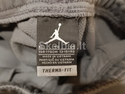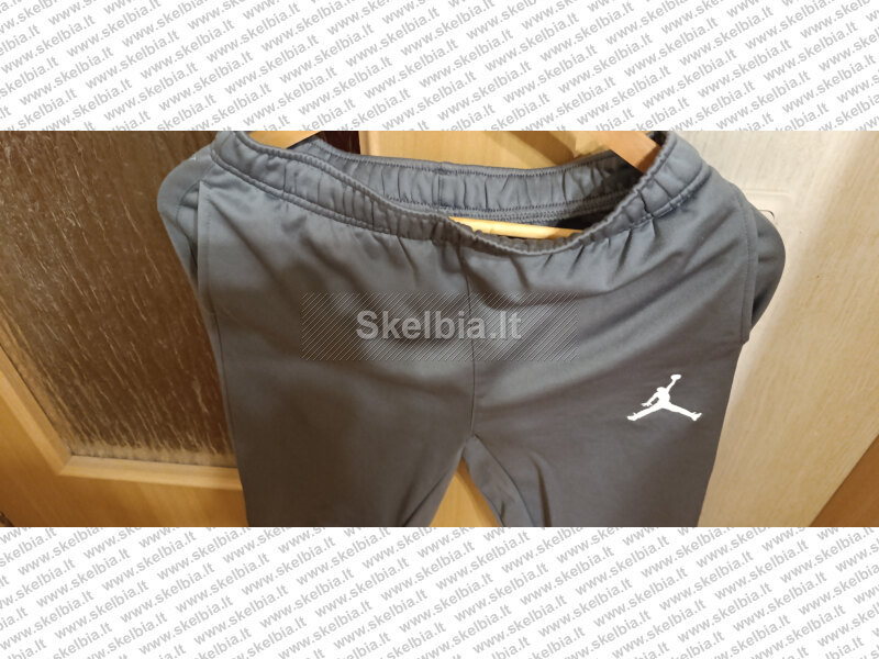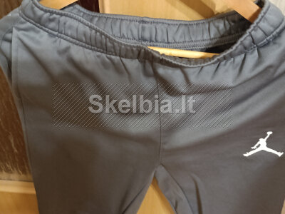 Originalios Jordan firmos treninginės kelnės, pašiltintos nestipriai. medžiaga poliesteris. Būklė labai gera, yra pora nedidelių medžiagos patempimų. Dydis etiketėje paaugliškas XL 13-15 metų.
