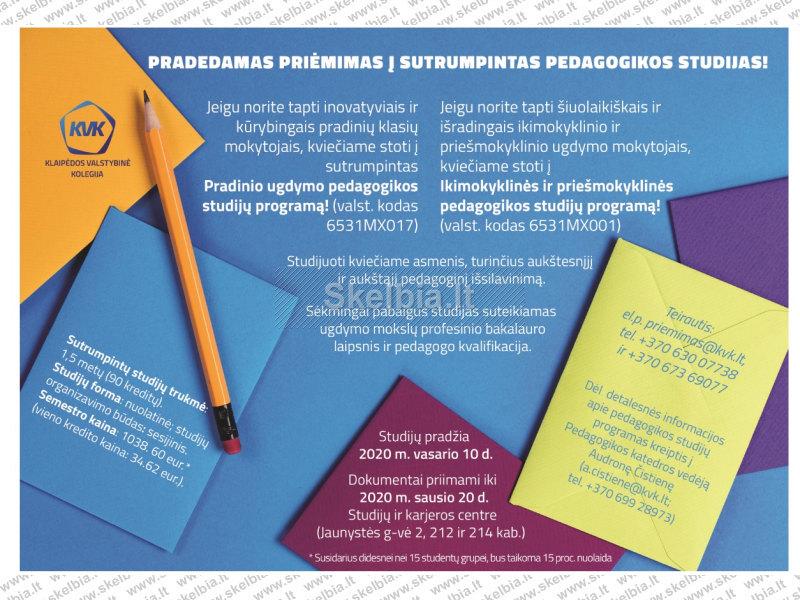 Dėl detalesnės informacijos apie pedagogikos studijų programas kreiptis į Pedagogikos katedros vedėją Audronę Čistienę (a.cistiene@kvk.lt; tel. +370 699 28973)
