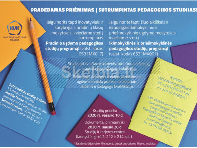 Dokumentai priimami iki 2020 m. sausio 20 d. Studijų ir karjeros centre (Jaunystės g-vė 2, 212 ir 214 kab.)