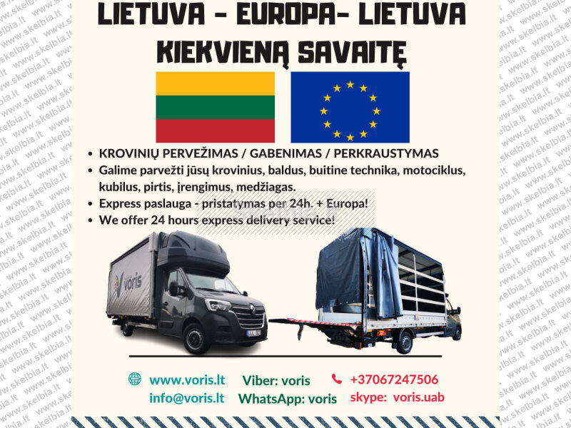 Vežame krovinius po visą Europą Lithuania - Europe - Lithuania +37067247506 ARBA +37064614499 info@voris.lt www.voris.lt