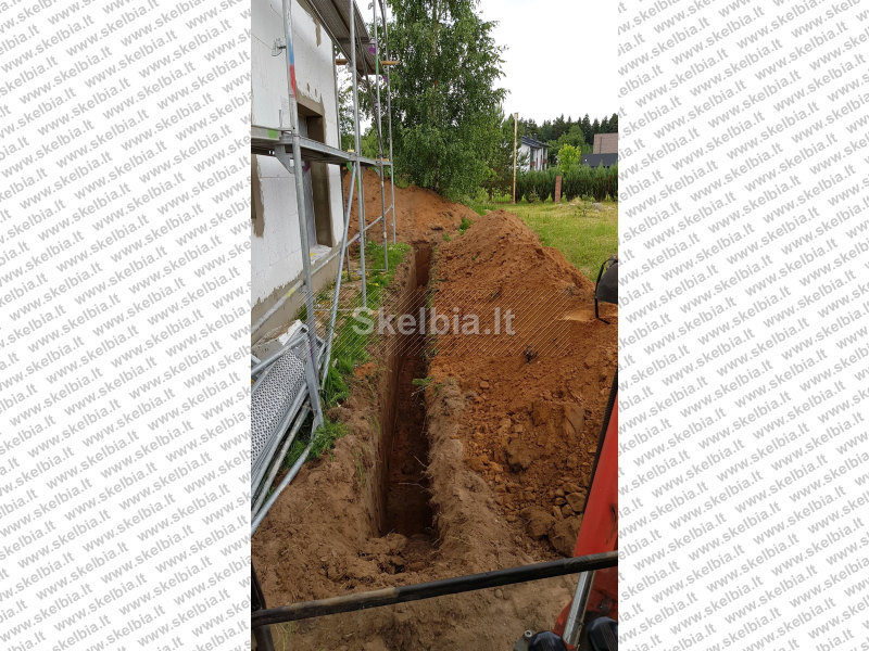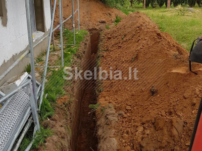 7. Pamatų atkasimas pamatų šiltinimo darbams atlikti, drenažui pakloti