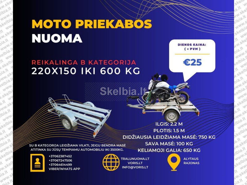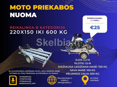 MOTOCIKLAMS PRIEKABA ! 220X150 IKI 600 kg !
