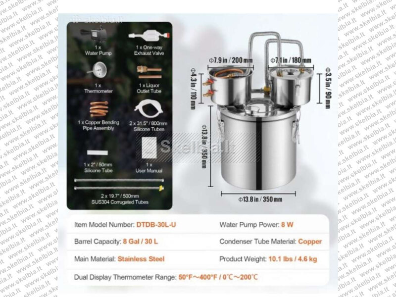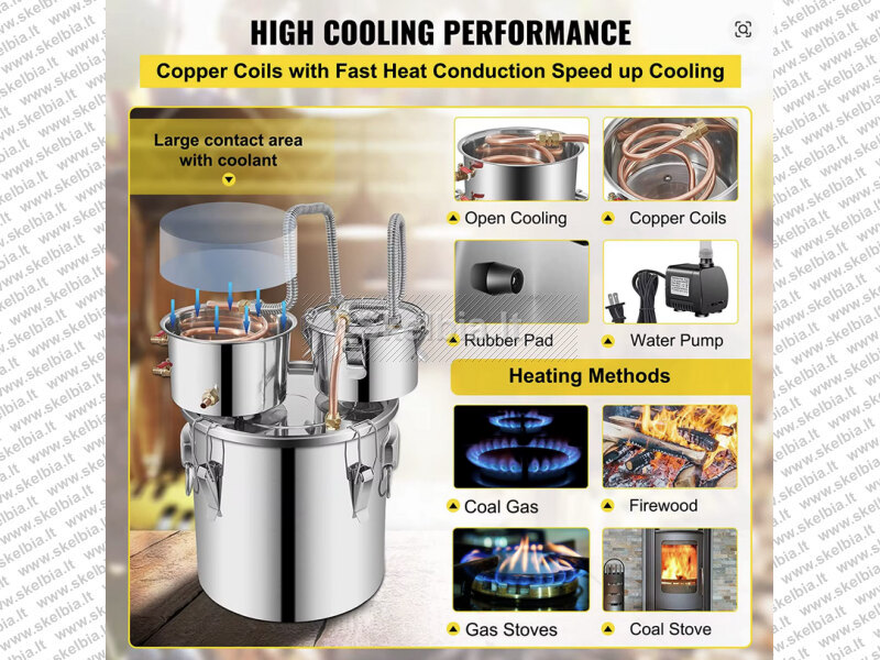 Naujas 30L distiliatorius pilnas komplektas, paruoštas naudojimui