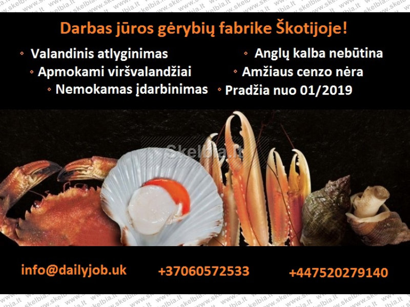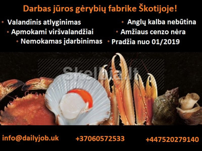 Siūlomas pastovus darbas jūros gėrybių fabrike Škotijoje.