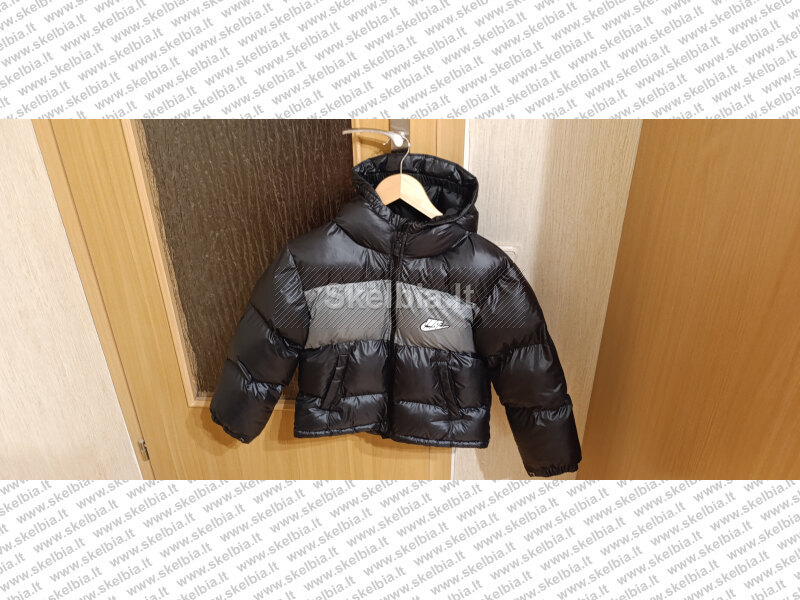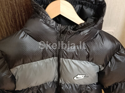Originali Nike firmos stilinga šilta striukė. Striukė labai šilta, bet patogi, užpildas sinteponas, modelis trumpesnis. Kapišonas kiek prailgintas, todėl gerai apsaugo vėjuotomis dienomis, o patį kapišonas bei rankogalius galima suspasuti spaudėmis. Būklė ideali, dėvėta buvo vos kelis kartus, todėl praktiškai kaip nauja. Dydis 8-10 metų vaikui.