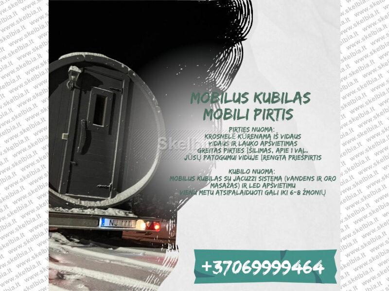 Išnuomoju mobilią pirtukę ir kubiliuką, kad maloniai praleistumėte laisvalaikį ALYTUS 37069999464 Kubilų su Jacuzzi , Pirčių, kubilų su led