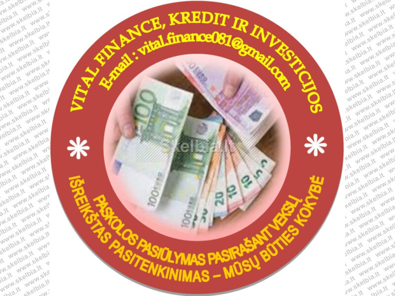 Norint gauti paskolą per 30 minučių, reikia susisiekti tik vienu adresu: vital.finance081@gmail.com