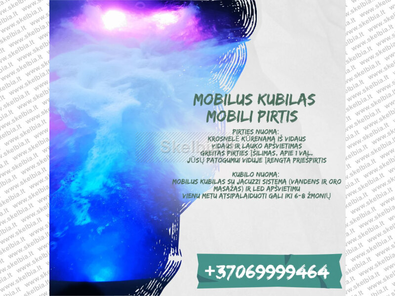 Mobilus kubilas su Jacuzzi sistema ir mobili pirtis Tel.: +37069999464