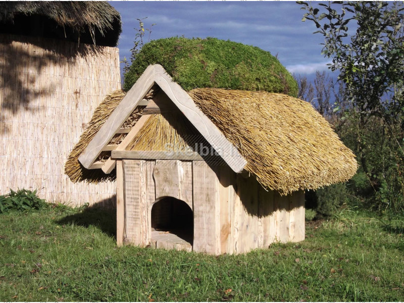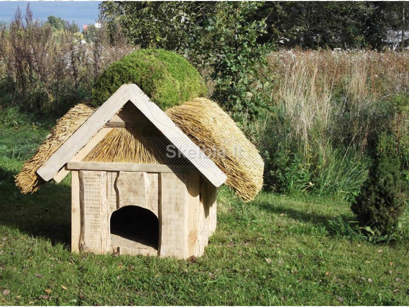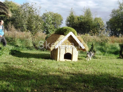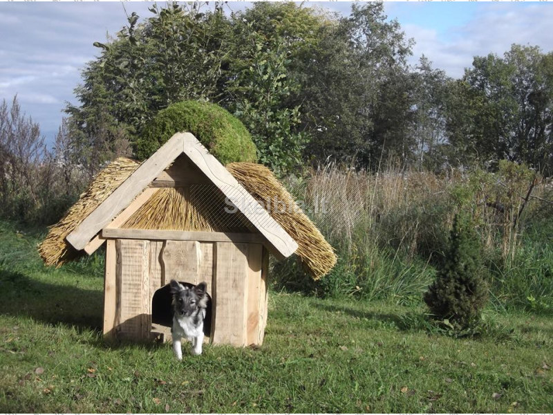 Gaminame ivaires šuns būdas su šiaudiniais ir kitais stogais.