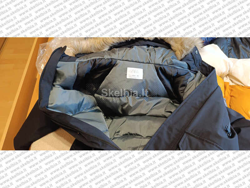 Zara firmos žieminė striukė. Užpildas pūkai, medžiaga pagal viską turėtų nepraleisti lietaus. kailiukas nusiima. Spalva tamsiai mėlyna, ne juoda. Būklė labai gera. Dydis etiketėje 13-14 metų arba 164 cm ūgiui, atitinka vyrišką XS/S dydį (išmatavimai foto). Kaina 20€, Kaunas, siunčiu, +37062701267.